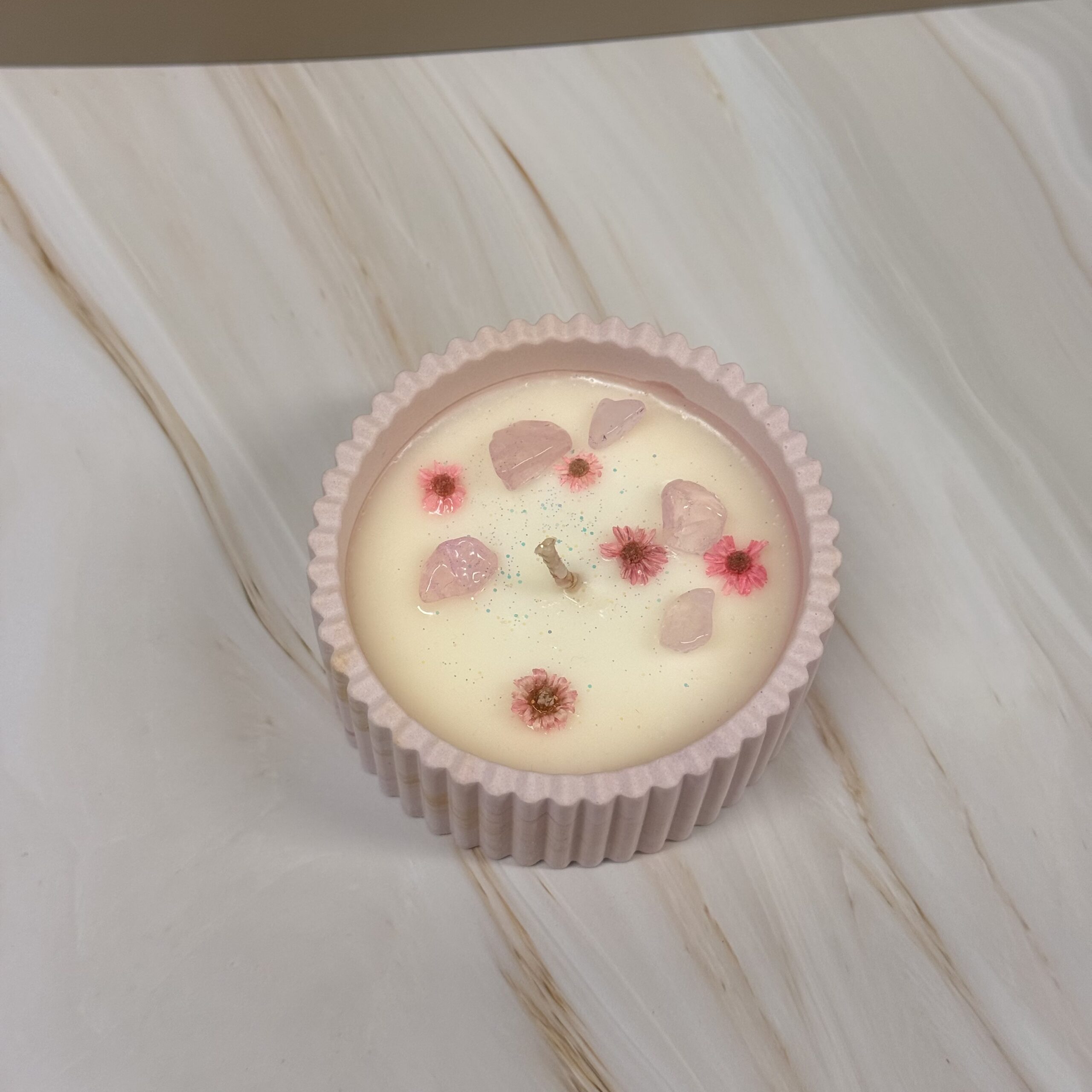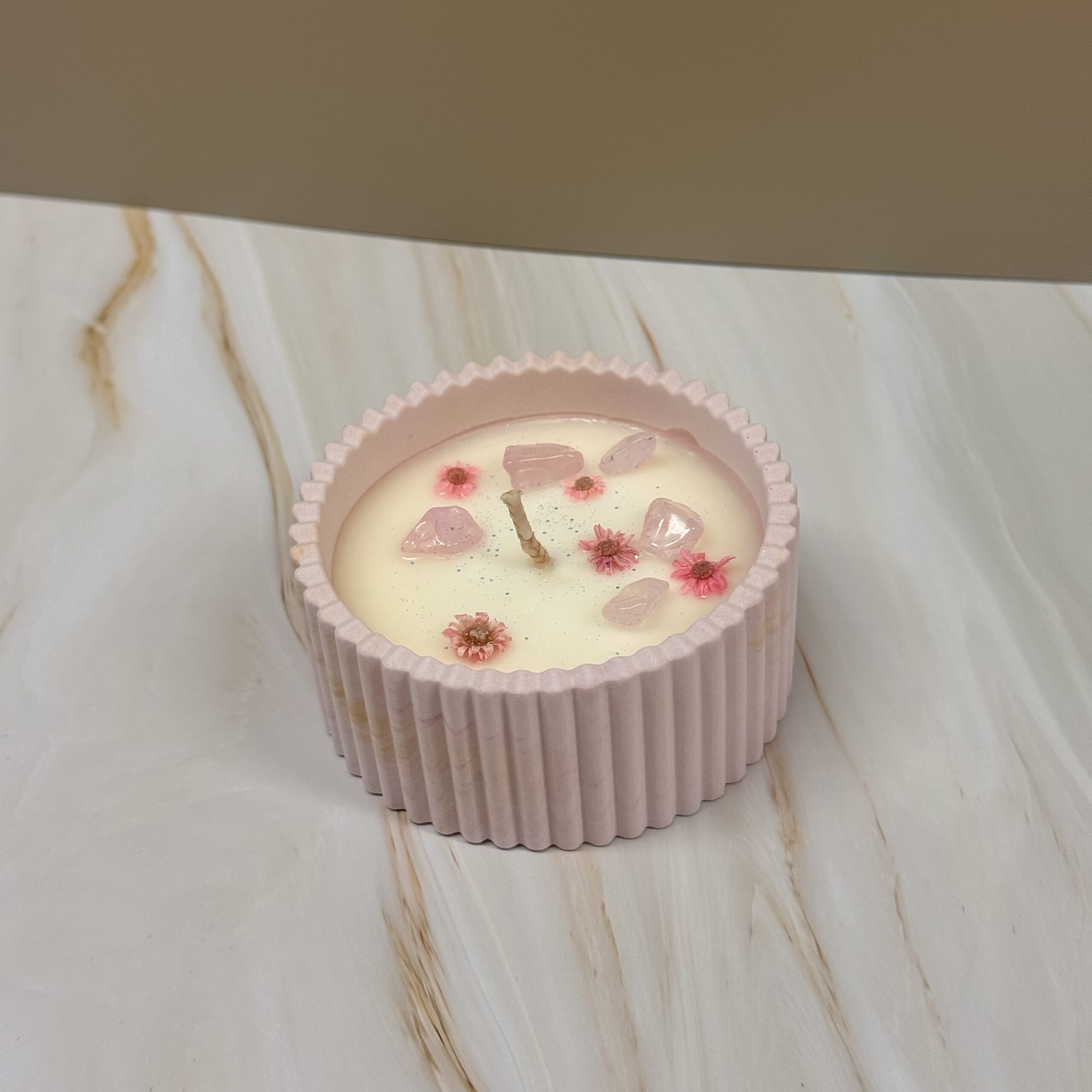 Sojavaha küünal Roosa kvartsiga 80g – Virsik