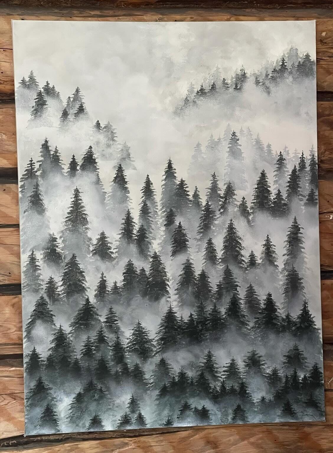 Tule veeda rahulik loominguline hetk ja maali 40×50 cm lõuendile efektne “udune mets”.